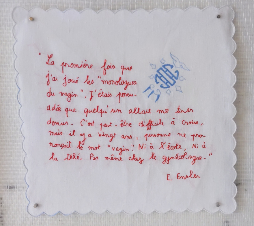 8 mouchoirs brodés se sont installés dans « Une chambre à soi » à l’exposition-résidence de Piègut-Pluviers en octobre 2025…